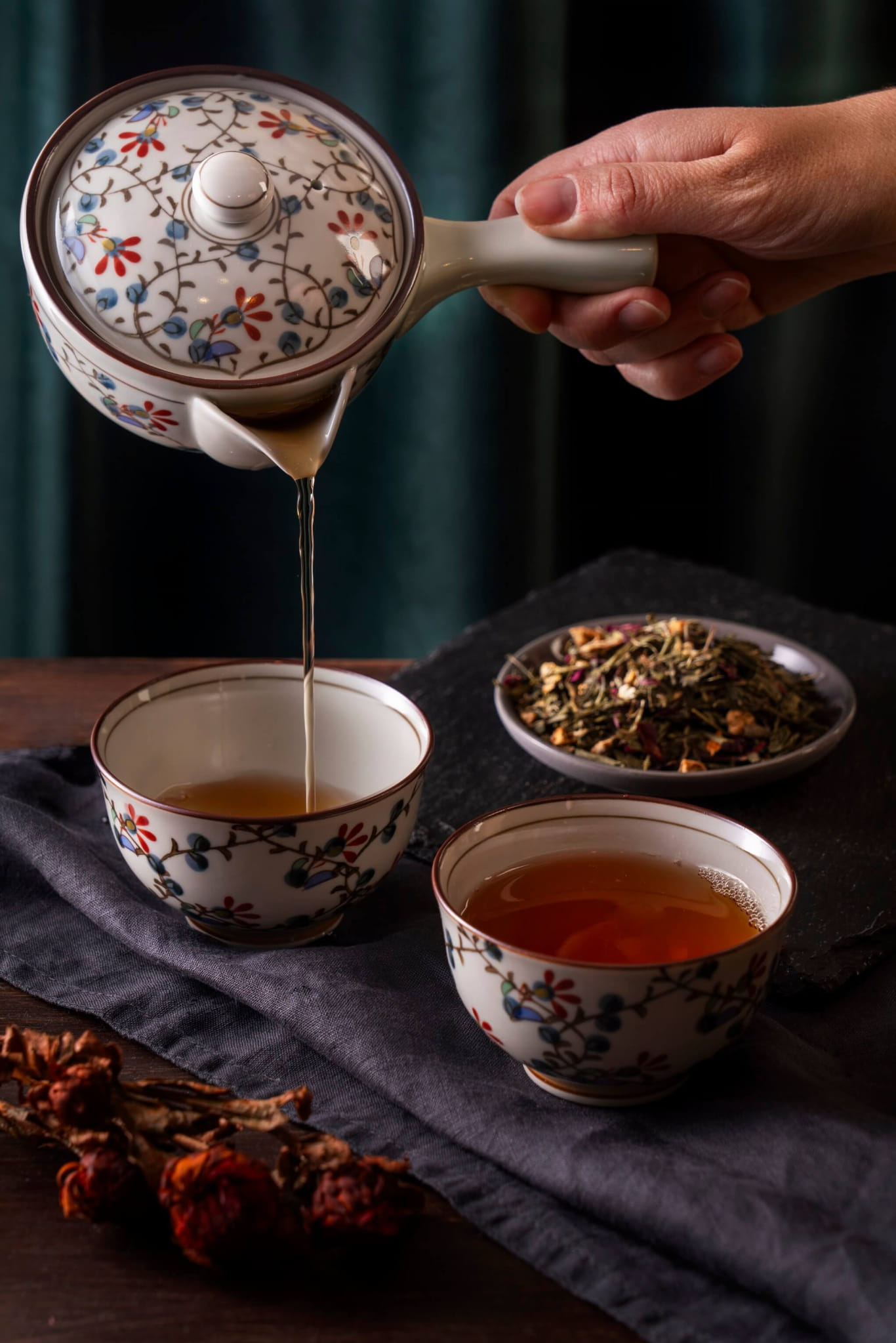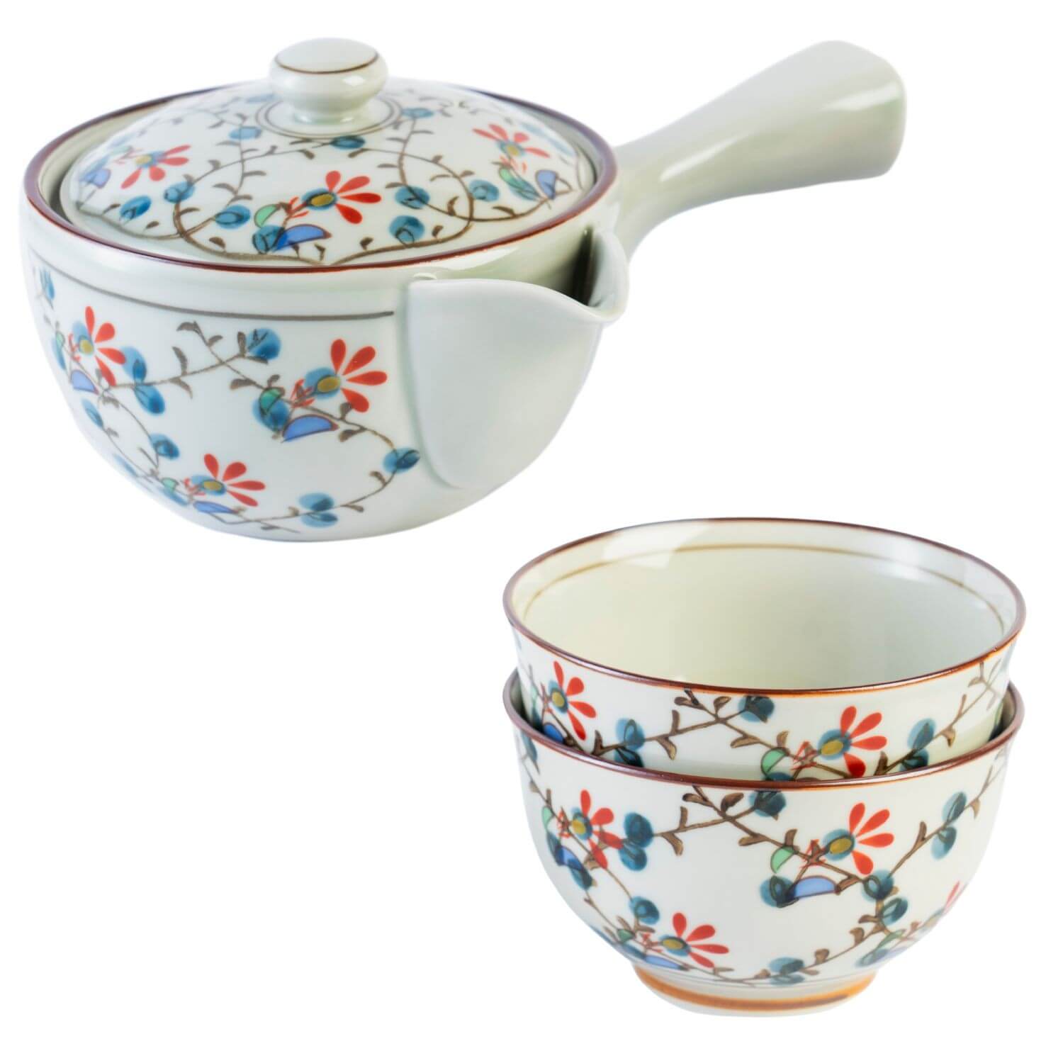 Japoński zestaw do herbaty Nishikiso Tea Set to wyjątkowa propozycja dla miłośników tradycyjnych rytuałów parzenia. W skład kompletu wchodzi czajniczek kyusu z wygodną boczną rączką oraz dwie czarki. Zestaw wykonano z wysokiej jakości porcelany w subtelnym odcieniu bieli wpadającej w szarość, zdobionej roślinnym, kwiatowym wzorem w odcieniach czerwieni, zieleni i błękitu. Dekoracyjny motyw nadaje mu elegancji i sprawia, że doskonale prezentuje się zarówno w codziennym użytkowaniu, jak i podczas wyjątkowych okazji.