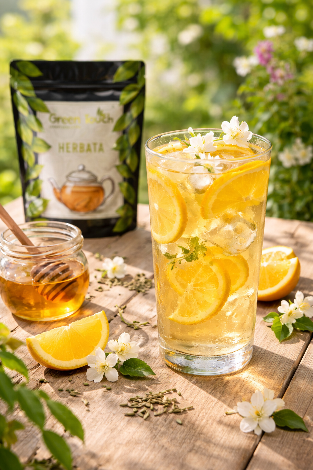 Mrożona biała herbata jaśminowa z cytrusami i miodem
