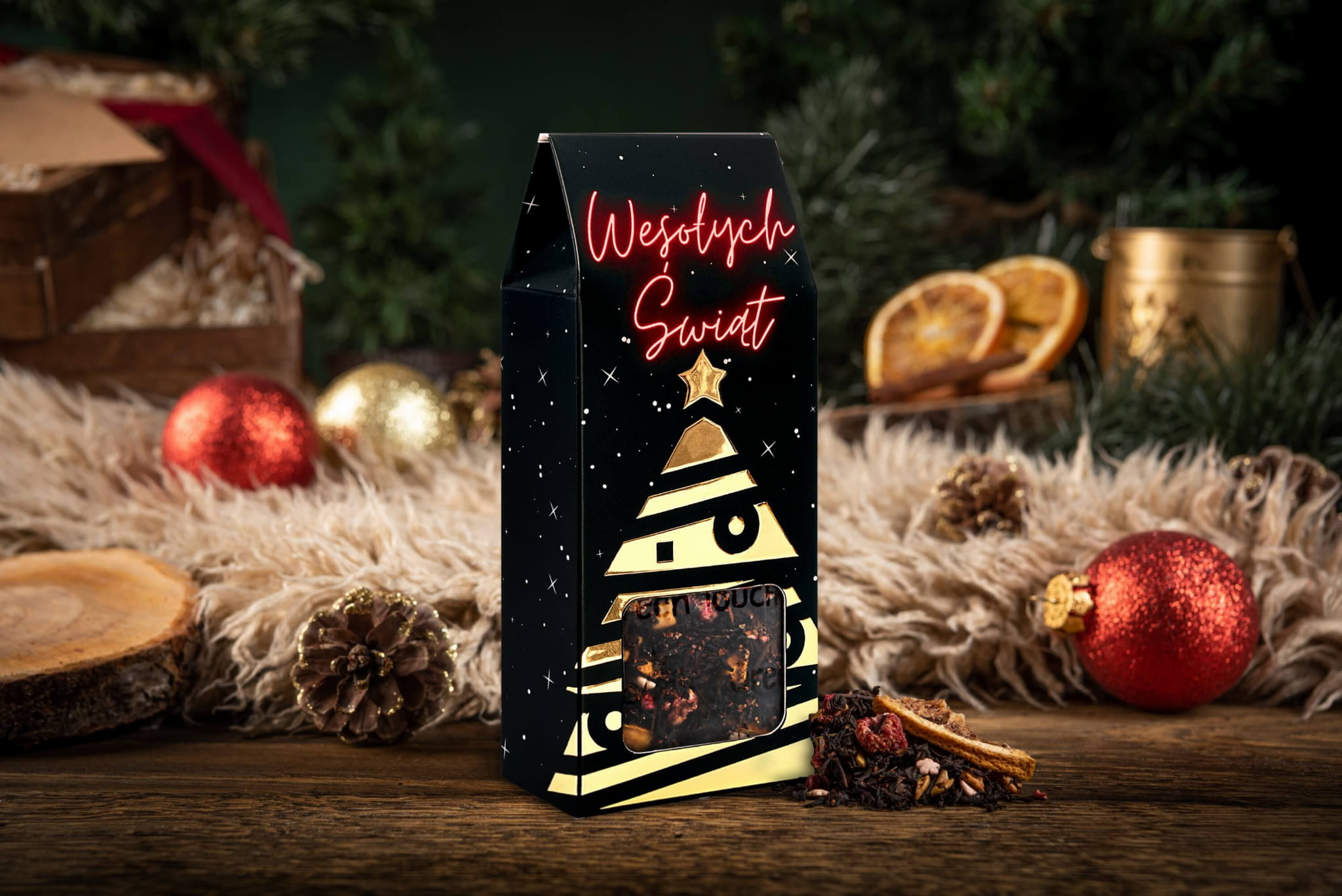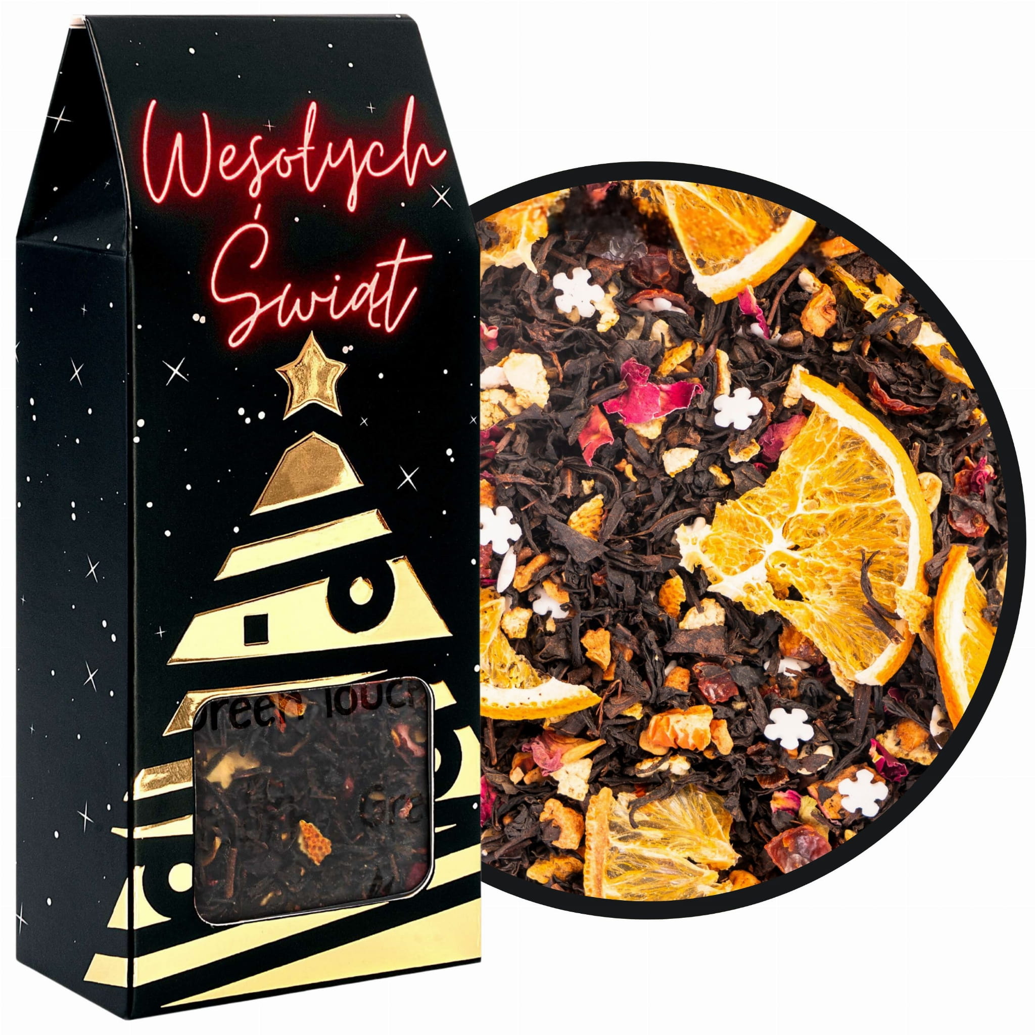 Herbata czarna o świątecznym charakterze, wzbogacona słodkimi płatkami śniegu i kwaskowatym akcentem pomarańczy oraz hibiskusa. Aromatyczna kompozycja, idealna na zimowe wieczory, która przeniesie Cię w magiczny, świąteczny nastrój.
