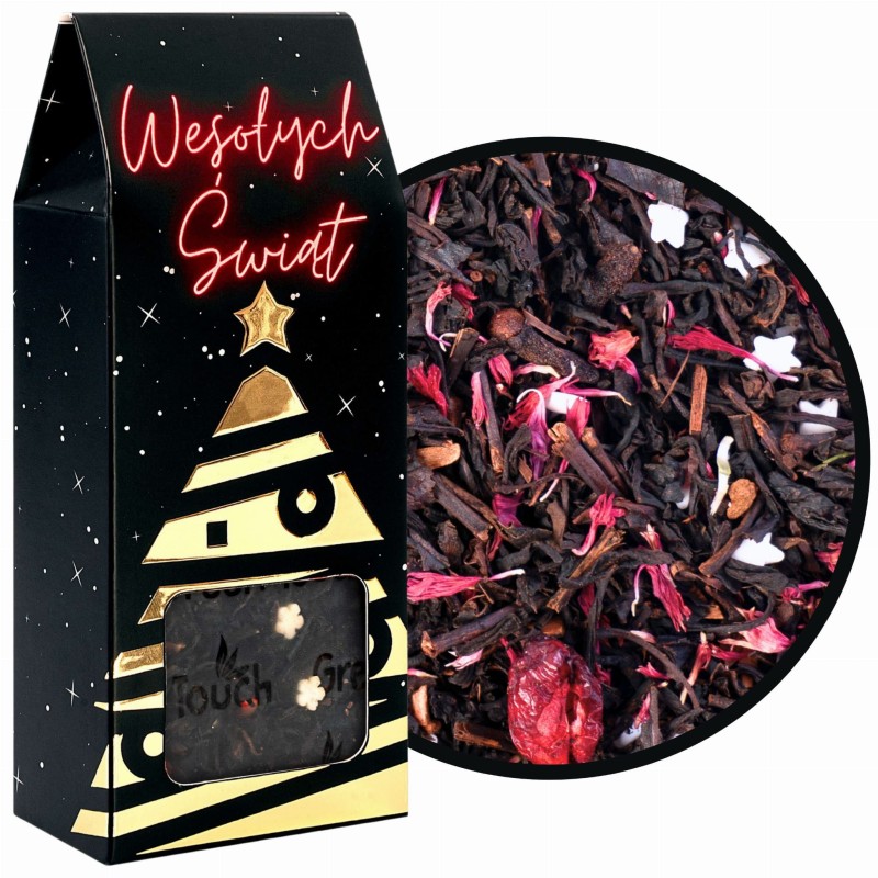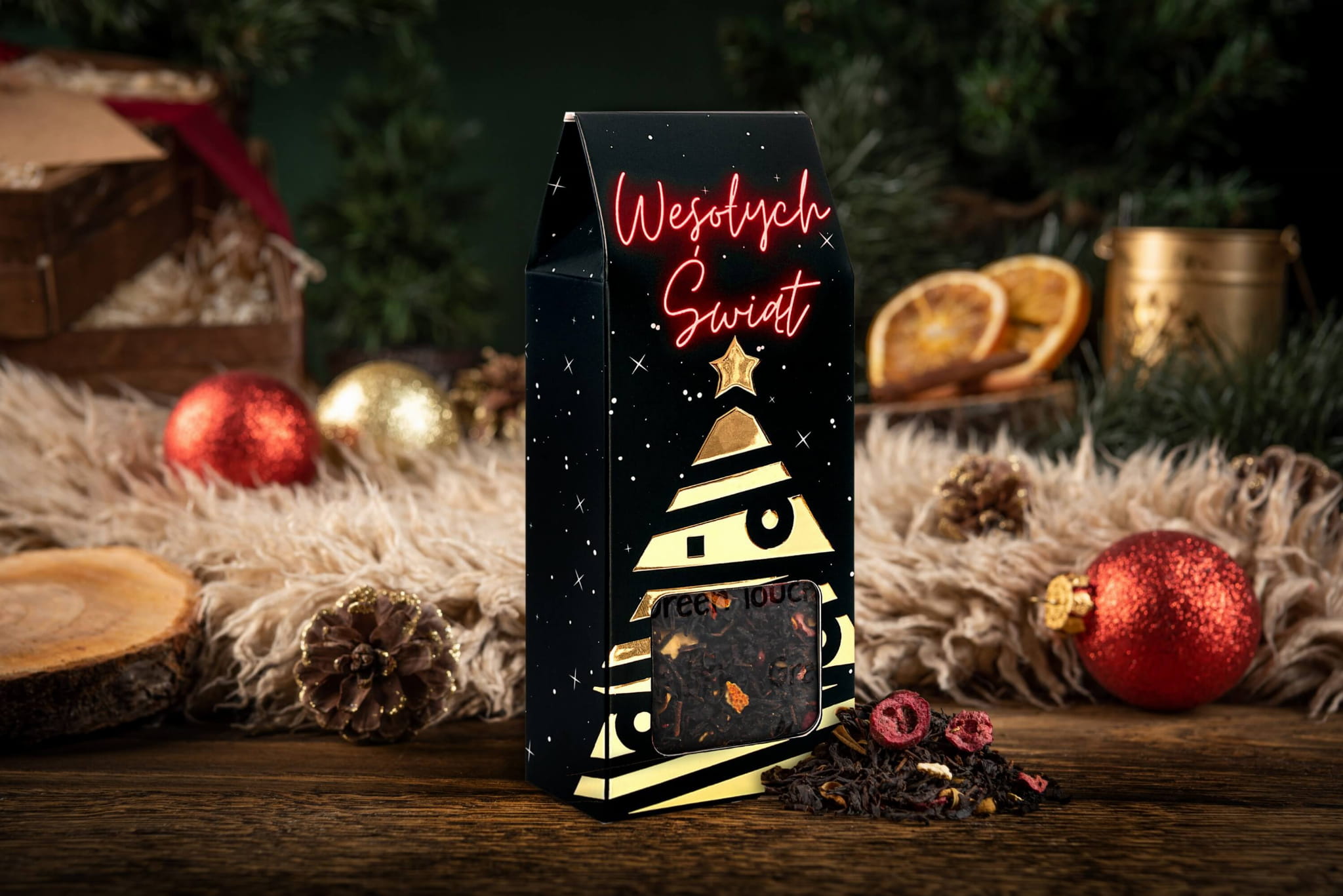 Herbata czarna o świątecznym charakterze, wzbogacona słodkimi gwiazdkami i kwaskowatym akcentem pomarańczy oraz hibiskusa. Aromatyczna kompozycja, idealna na zimowe wieczory, która przeniesie Cię w magiczny, świąteczny nastrój. Świetny pomysł na oryginalny świąteczny upominek.