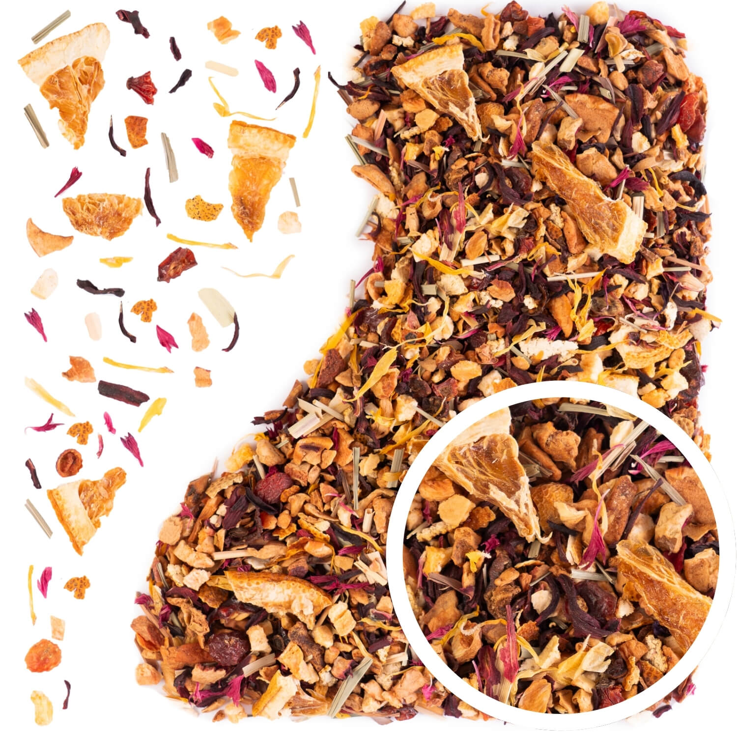 To klasyczna, a zarazem świeża herbata owocowa na bazie hibiskusa, która świetnie sprawdza się zarówno na gorąco, jak i w wersji na zimno. Morelowy Ogród to idealna sypana herbata owocowa do codziennego picia – naturalna, estetyczna i wyjątkowo przyjemna w smaku.