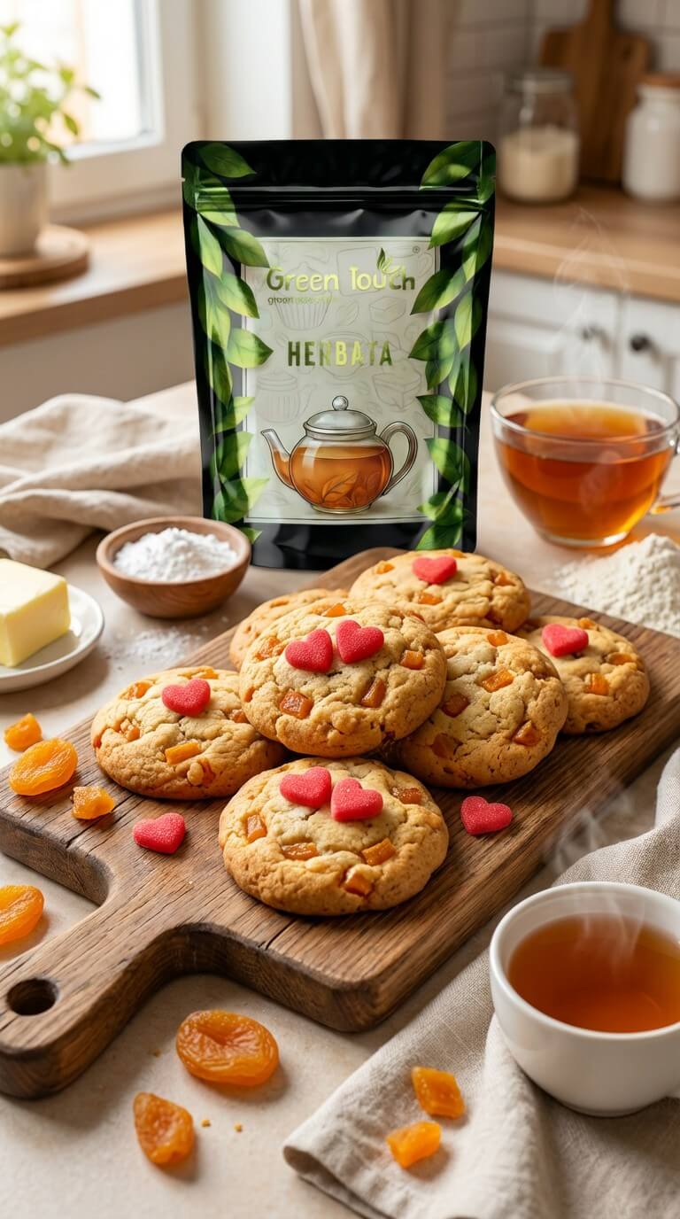 Zaparz herbatę i odstaw do ostygnięcia. W misce połącz mąkę, cukier i masło, a następnie dodaj napar – zagnieć ciasto. Dodaj posiekane morele i wymieszaj. Uformuj małe ciasteczka, ułóż na blasze i piecz ok. 15 minut w 180°C, aż lekko się zarumienią. Po wystudzeniu udekoruj słodkimi cukrowymi dekorami. To efektowny i smaczny deser z herbacianą nutą, który zachwyci gości.