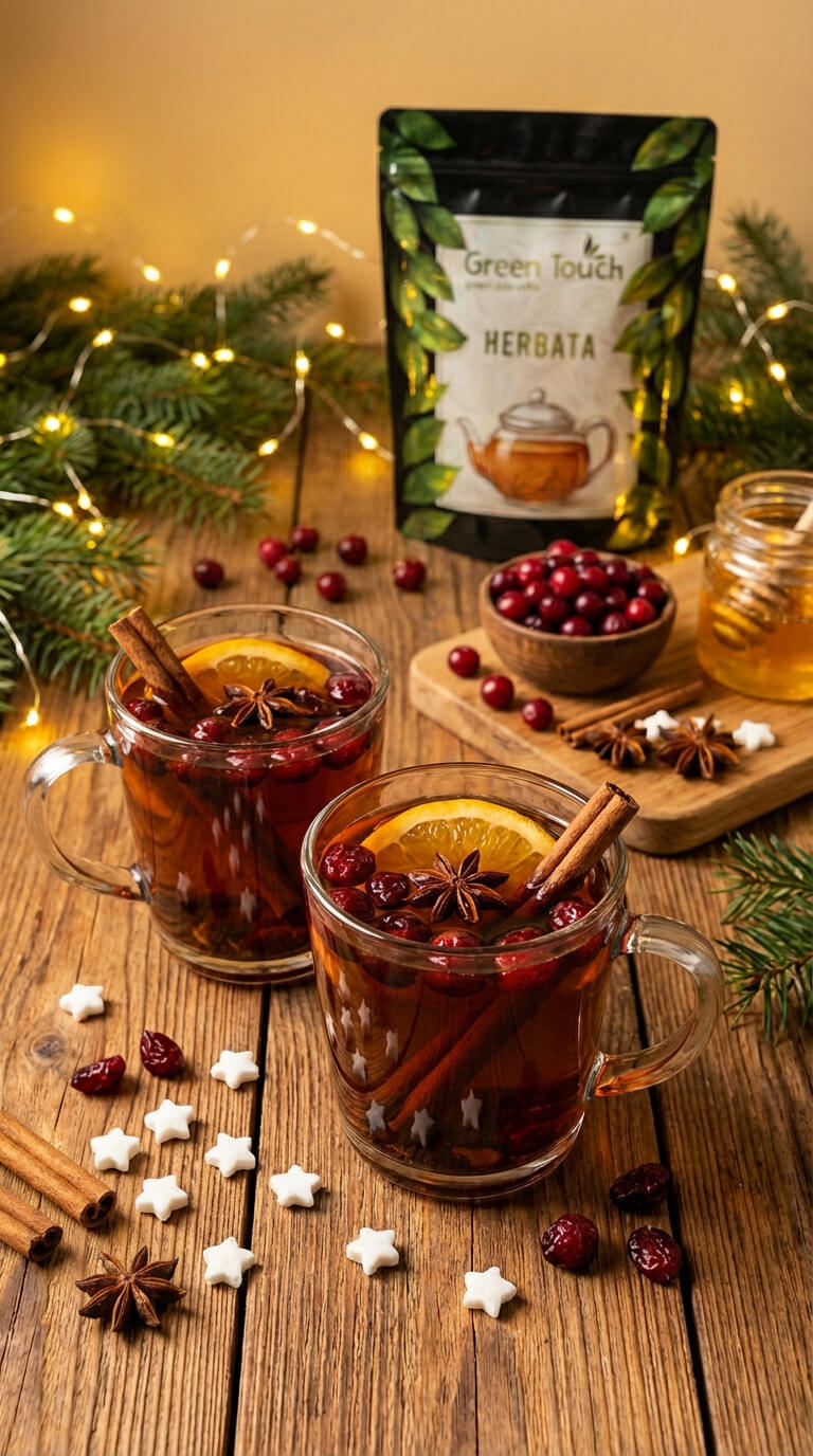 Świąteczny kompot herbaciany z liofilizowanymi owocami i cukrową nutą
