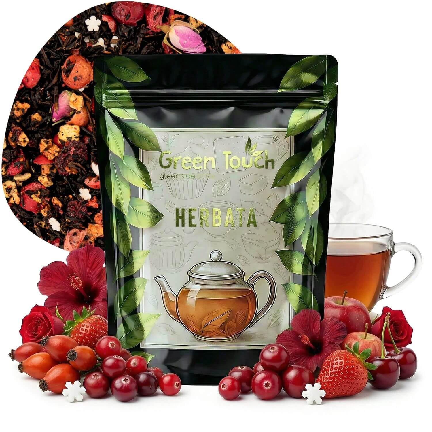 Świąteczna Bajka to pełna uroku i magii czarna herbata z owocami i płatkami śniegu, która przenosi do świata świątecznych aromatów i dziecięcych wspomnień. Jej bazą jest klasyczna herbata czarna OP, stanowiąca solidne tło dla bogatej, wieloskładnikowej kompozycji. W tej mieszance odnajdziesz dziką różę, liofilizowane owoce (wiśnię, żurawinę, truskawkę i jabłko) oraz subtelny kwaskowaty hibiskus. Pąki róży nadają delikatnej kwiatowości, a całość wieńczą słodkie, cukrowe płatki śniegu, które rozpuszczają się w naparze niczym świąteczna magia. To czarna herbata świąteczna z owocami, która doskonale sprawdzi się w grudniowe poranki i zimowe wieczory.