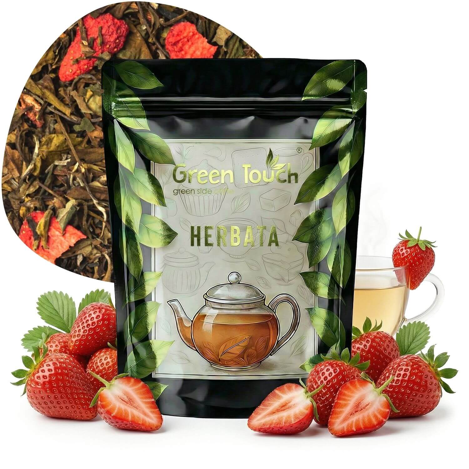 Truskawkowa to delikatna herbata biała sypana z dodatkiem owoców o lekkim, naturalnie słodkim aromacie. Bazą mieszanki jest herbata biała Pai Mu Tan, ceniona za subtelny smak oraz jasny, łagodny napar. Herbatę białą otrzymuje się z najdelikatniejszych, nierozwiniętych pączków zbieranych wczesną wiosną. W tym stadium listki pokryte są drobnymi białymi włoskami. Nie są poddawane procesowi fermentacji – przechodzą jedynie proces więdnięcia i suszenia, dzięki czemu zachowują swoje naturalne właściwości oraz subtelny, kwiatowy aromat. Kompozycję uzupełnia liofilizowana truskawka, która nadaje naparowi przyjemnej, owocowej słodyczy i świeżego aromatu. To lekka i harmonijna herbata idealna dla miłośników delikatnych, owocowych naparów.