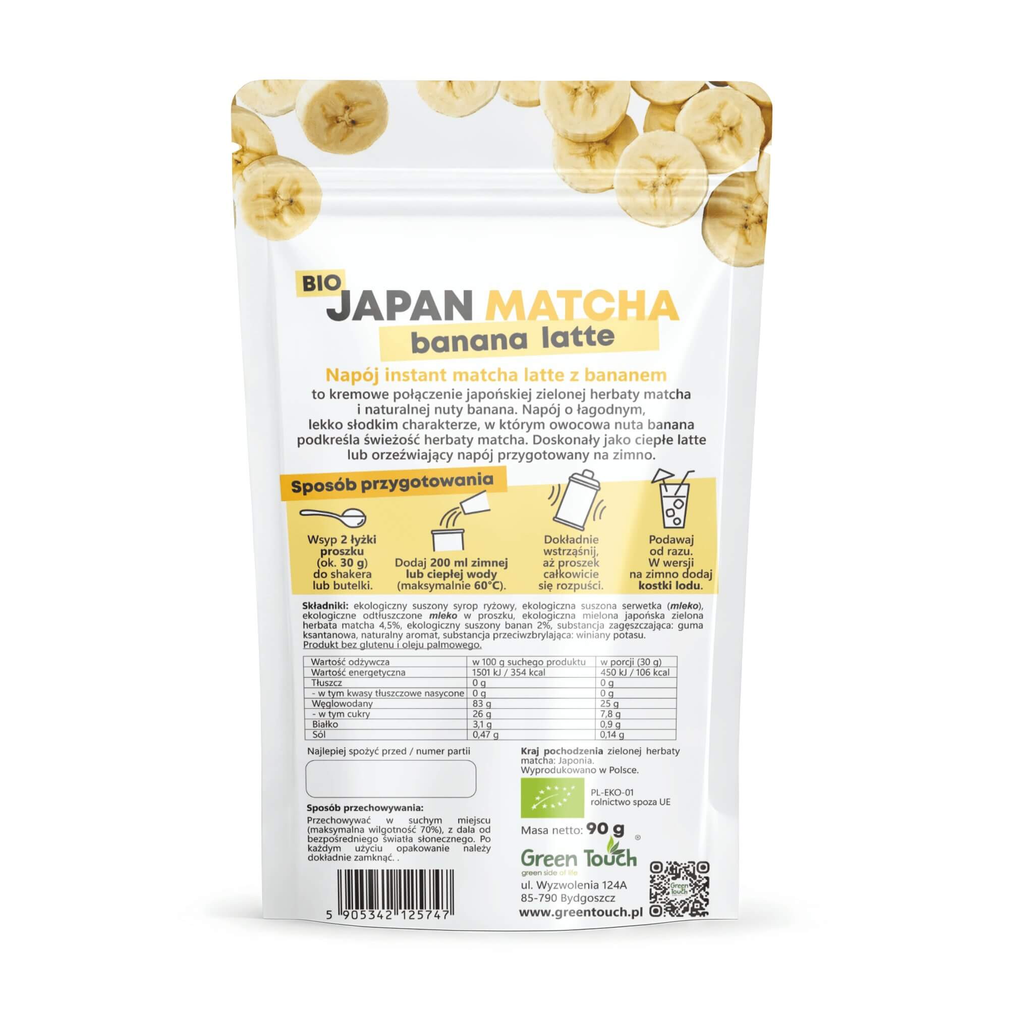 Bio Matcha Japońska Latte Bananowa banana instant 90 g herbata zielona Green Touch