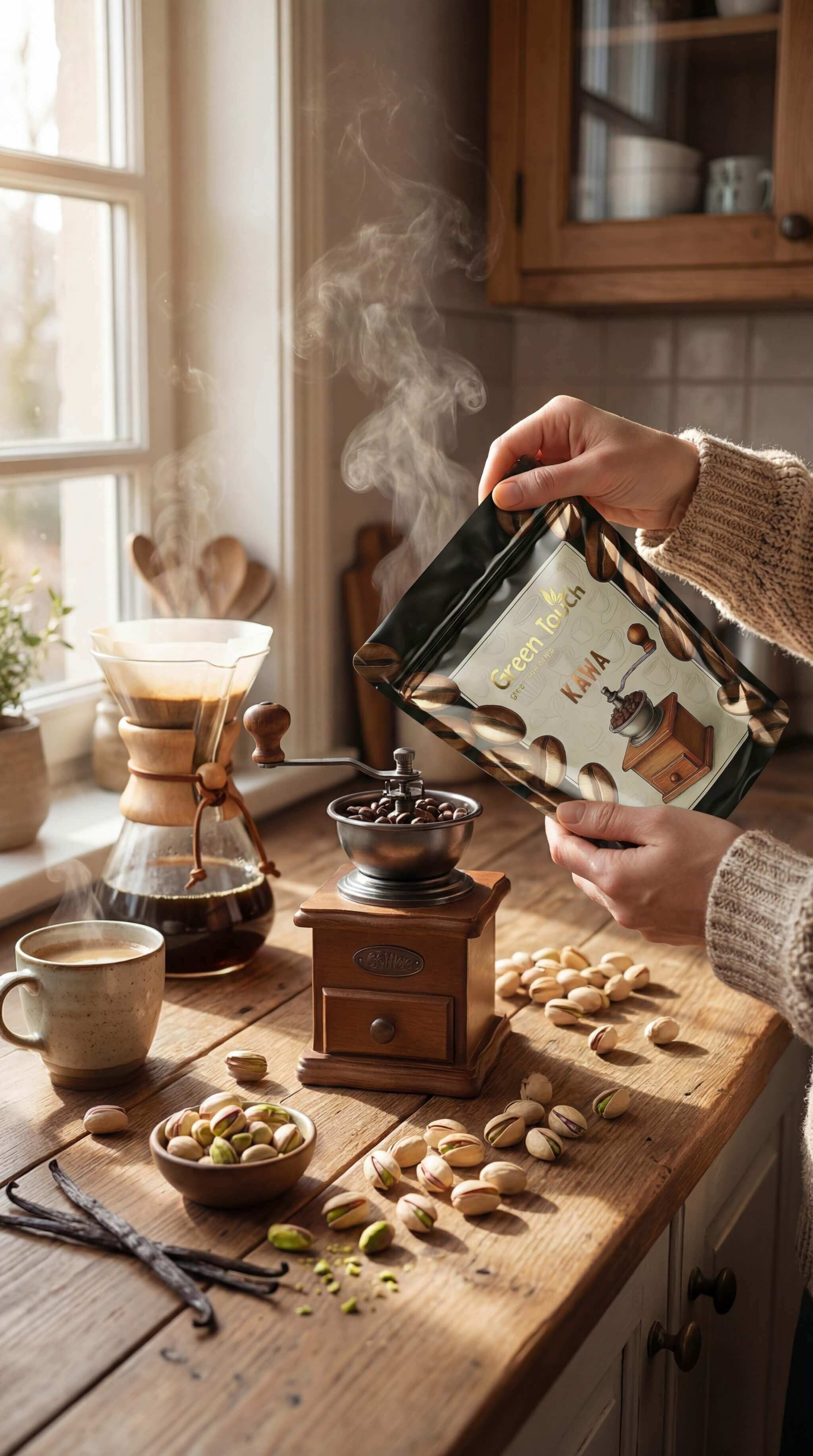 Kawa Orzech Laskowy od Green Touch to wyjątkowa kawa aromatyzowana 100% arabica, przygotowana z najlepszych ziaren pochodzących z renomowanych regionów: Parany (Brazylia), Junin (Peru), Montecillos (Honduras) i Bugisu (Uganda).