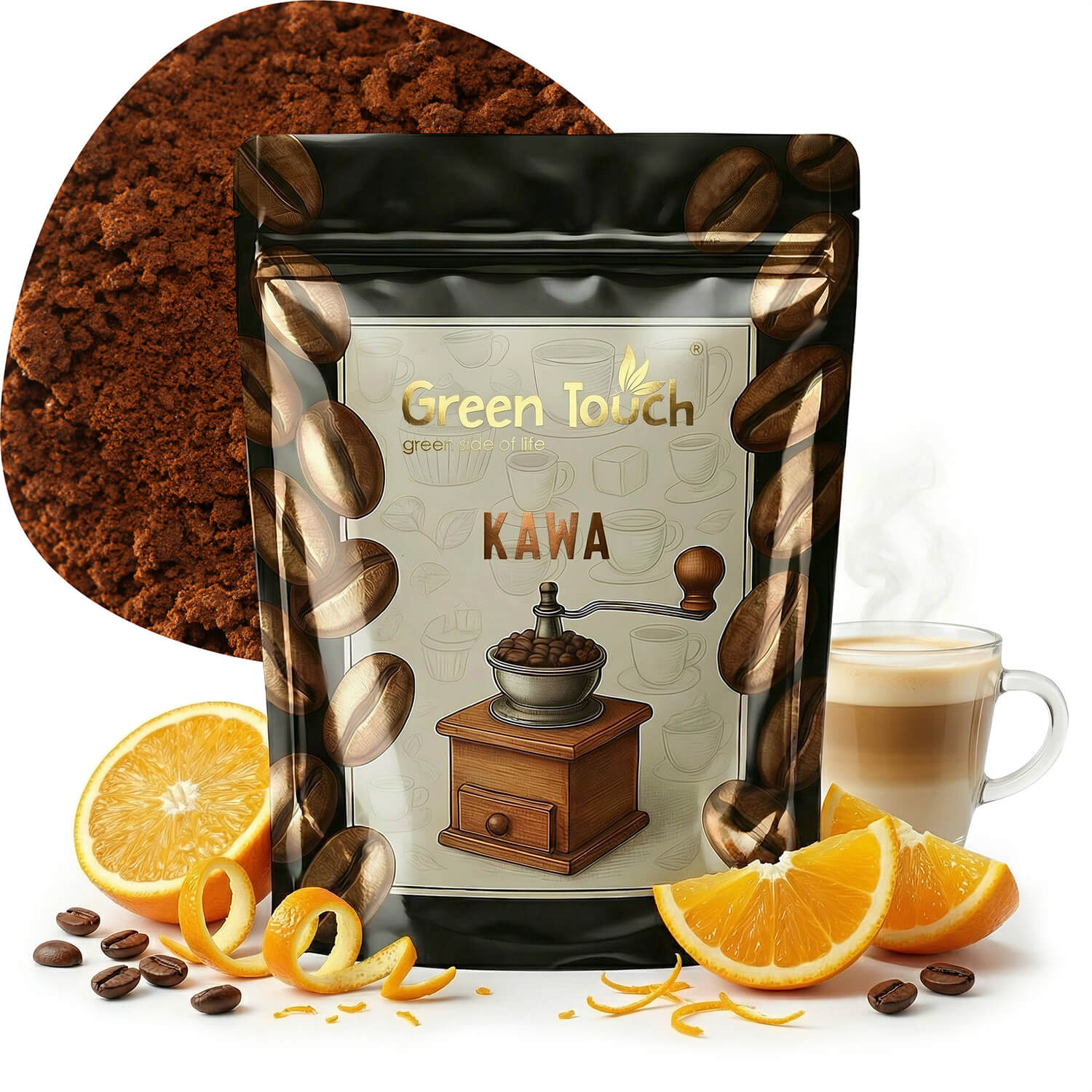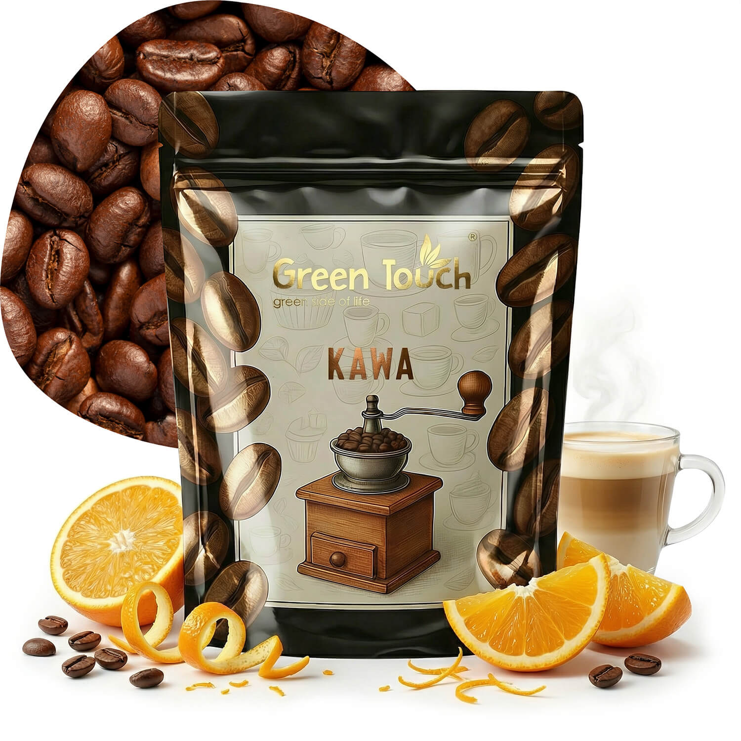 Kawa Pomarańcza od Green Touch to wyjątkowa kawa aromatyzowana 100% arabica, przygotowana z najlepszych ziaren pochodzących z renomowanych regionów: Parany (Brazylia), Junin (Peru), Montecillos (Honduras) i Bugisu (Uganda).