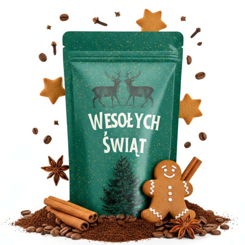Kawa świąteczna o smaku piernika alpejskiego w świątecznym opakowaniu