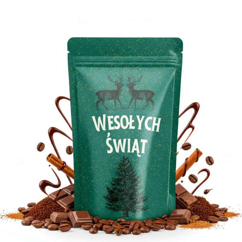 Kawa o smaku czekolady i cynamonu w świątecznym opakowaniu