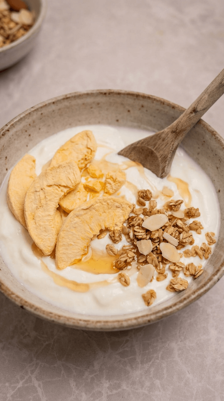 Liofilizacja to proces suszenia owoców w niskiej temperaturze, który pozwala zachować ich naturalne właściwości, smak oraz wartości odżywcze. Dzięki temu brzoskwinie pozostają trwałe, aromatyczne i wygodne w przechowywaniu, bez konieczności stosowania konserwantów.