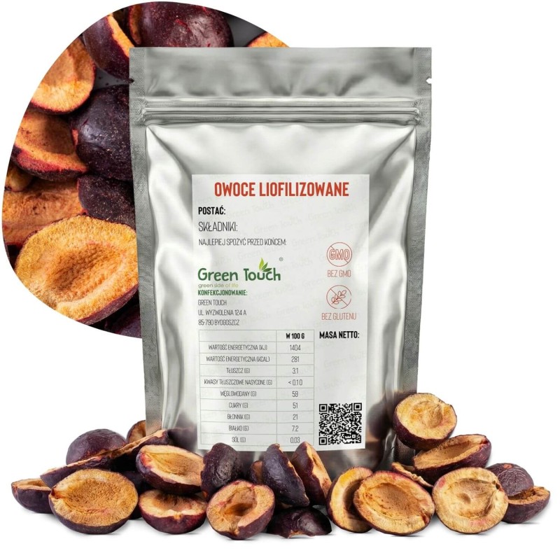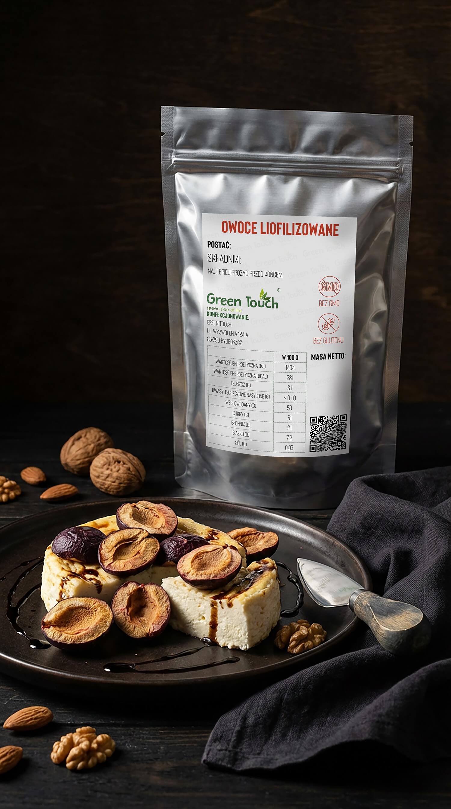 Połówki liofilizowanej śliwki Green Touch to wygodny sposób na wzbogacenie potraw o intensywny, naturalny smak owoców. Zachowana forma połówek sprawia, że produkt dobrze prezentuje się w daniach i pozwala na różnorodne zastosowania kulinarne.