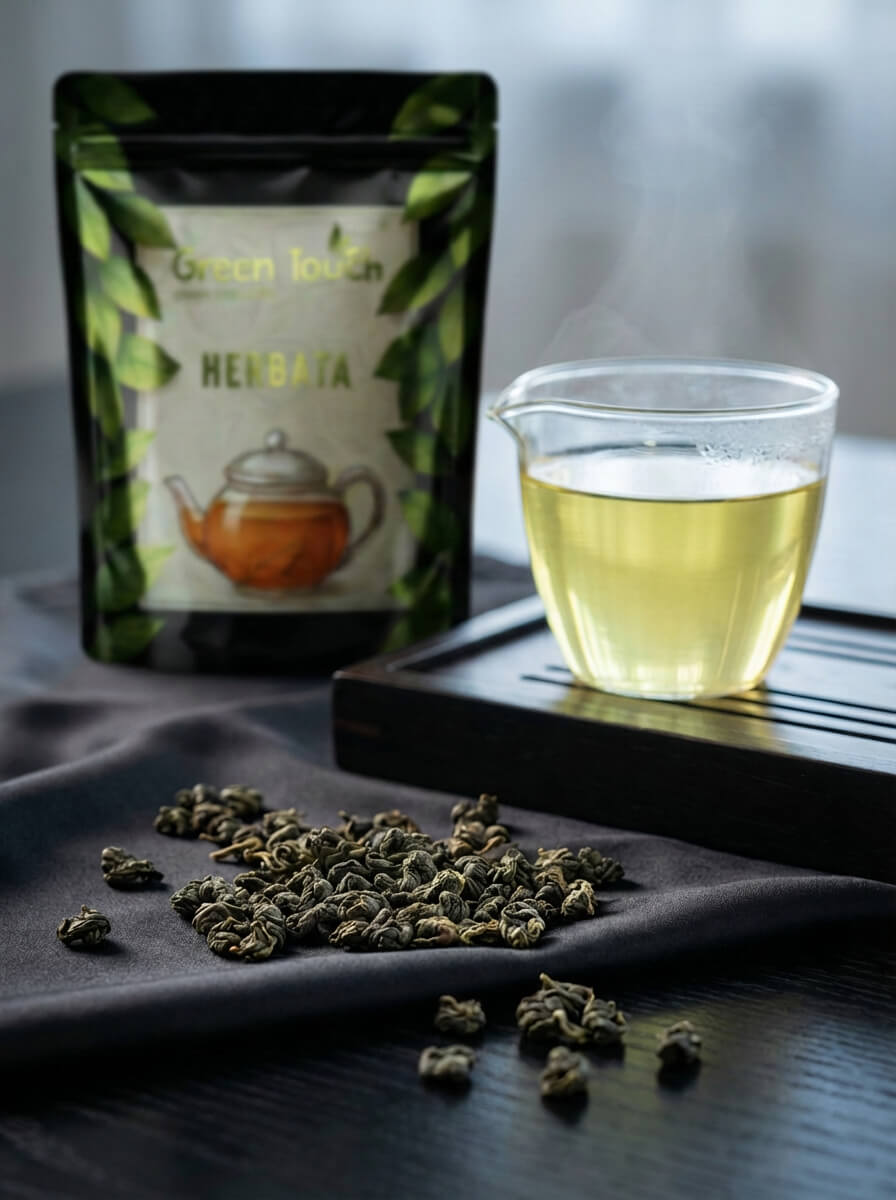 Zwinięta forma liści chroni aromat i pozwala zachować świeżość herbaty przez długi czas. Podczas parzenia kuleczki powoli rozwijają się, uwalniając głęboki smak oraz charakterystyczny, lekko dymny aromat zielonej herbaty z prowincji Zhejiang.