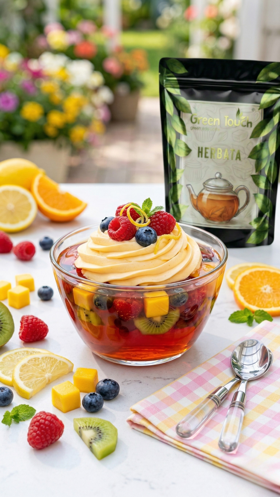Galaretka z herbaty Pu-Erh z owocami i kremem cytrusowym