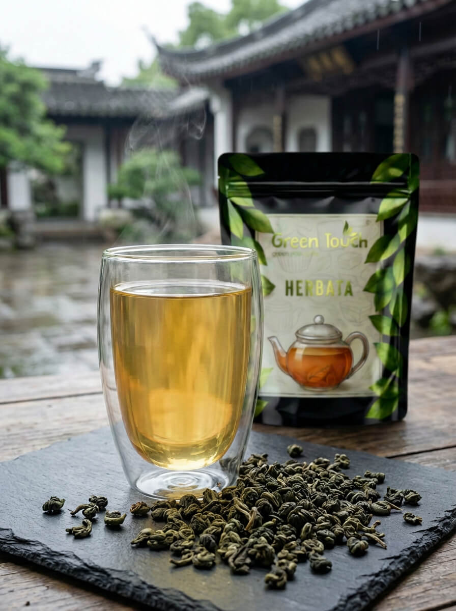 To jedna z najbardziej rozpoznawalnych zielonych herbat chińskich, ceniona za wyrazisty charakter i długą trwałość aromatu. Jej napar ma jasnozłoty, lekko zielonkawy kolor i intensywny profil smakowy – świeży, lekko dymny i przyjemnie mineralny. Dzięki zwartej formie liści herbata długo zachowuje swoją jakość i głębię smaku.