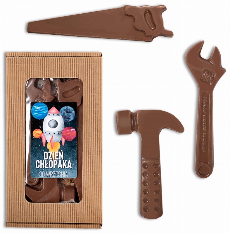 Duże narzędzia z czekolady w ozdobnym opakowaniu 100g z etykietą okazjonalną