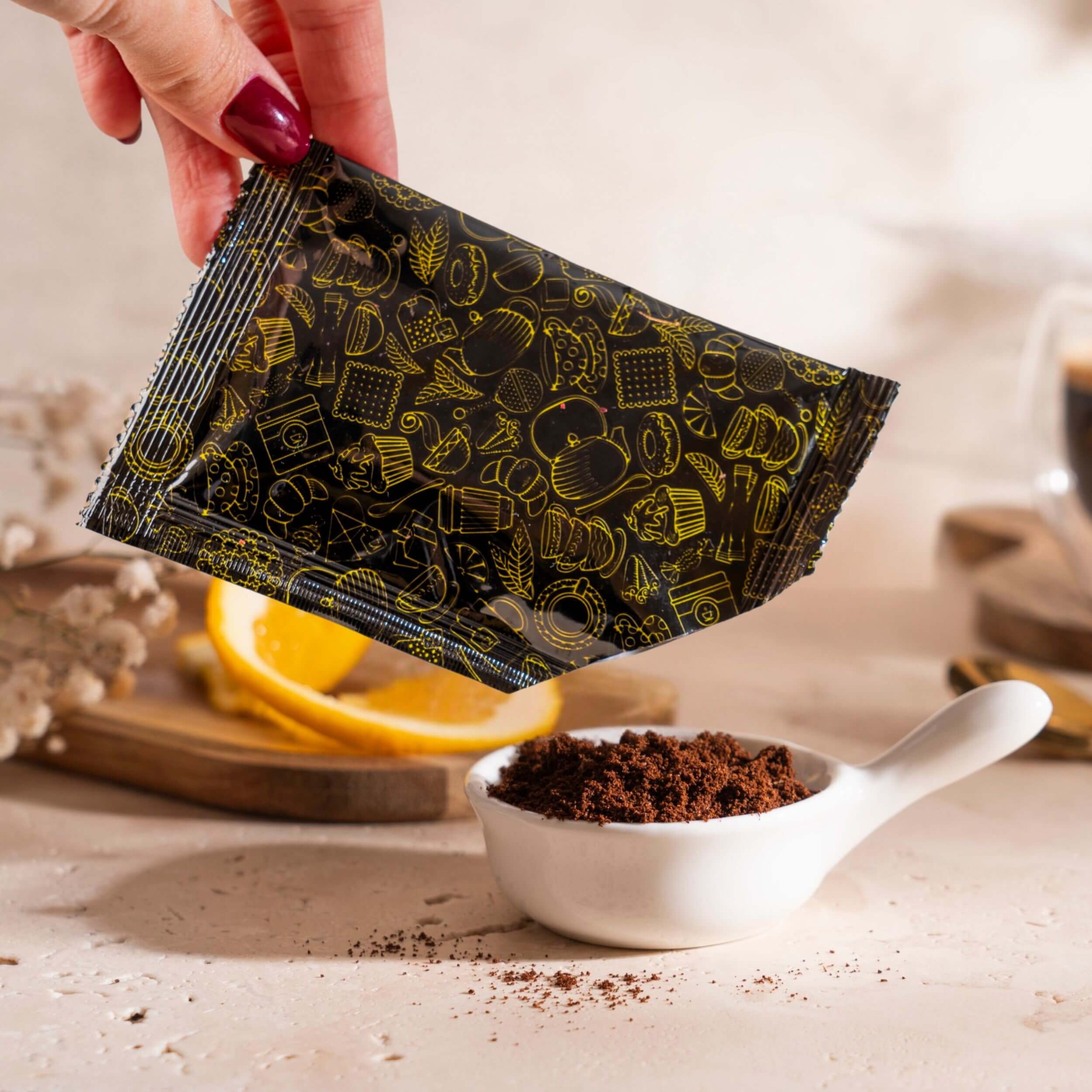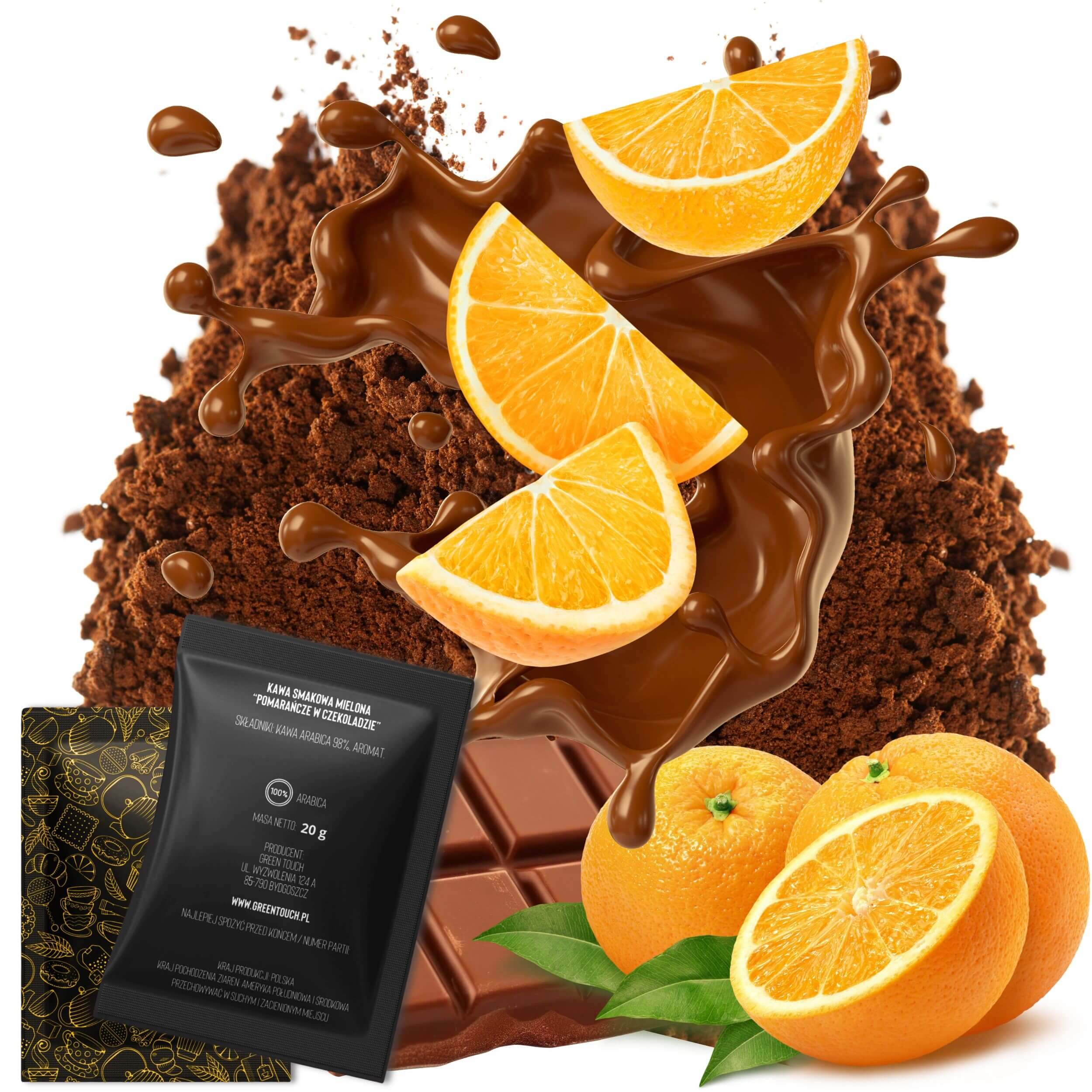- Kawa o smaku pomarańczy w czekoladzie. 100% arabica marki Green Touch 20 g w eleganckiej metalowej saszetce.
