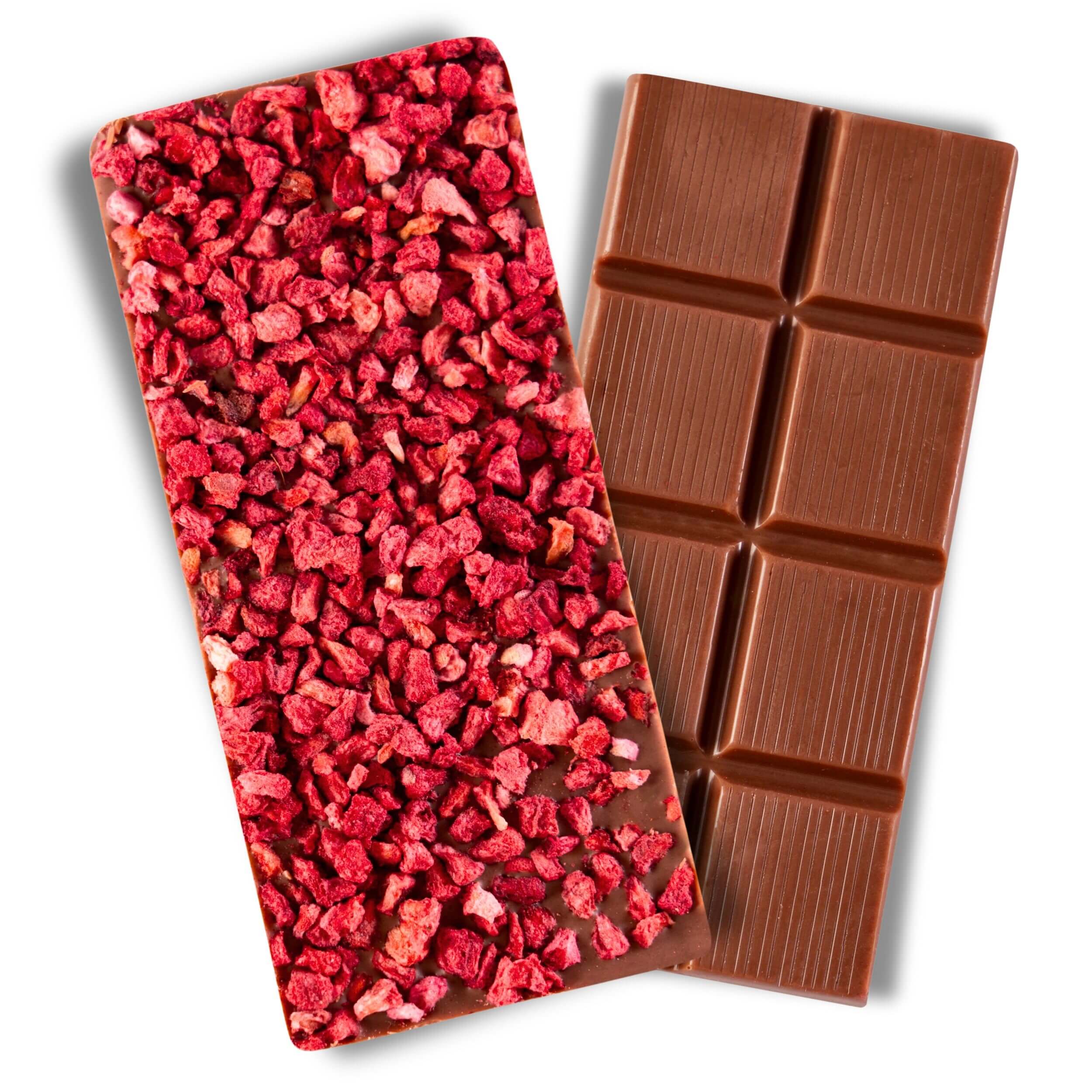 - Mleczna czekoladka z malinami liofilizowanymi 20 g. Doskonała czekolada z manufaktury marki Green Touch wyprodukowana wyłącznie z naturalnych składników.