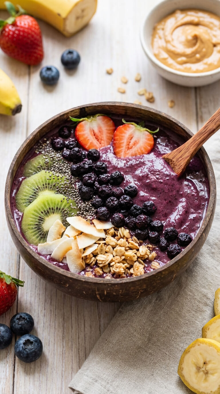 Smoothie bowl z aronią liofilizowaną
