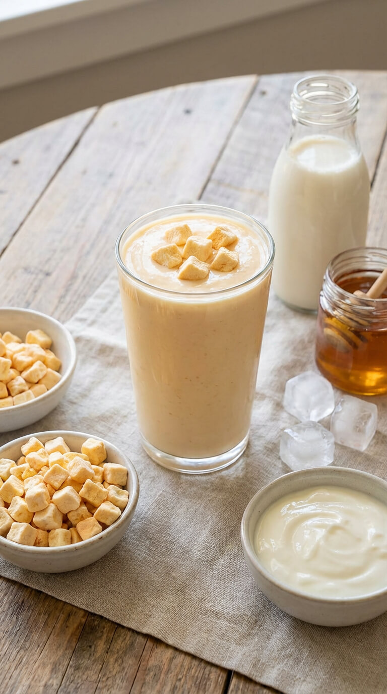 Koktajl z brzoskwinią liofilizowaną i jogurtem