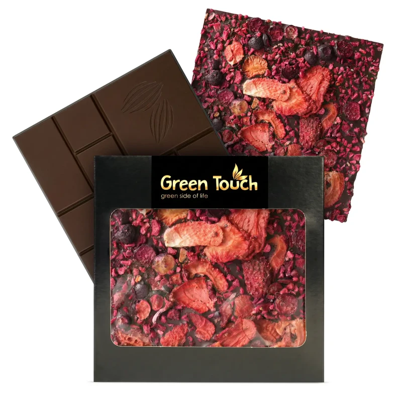 Green Touch czekolada gorzka ciemna 70% z truskawką, maliną i porzeczką liofilizowanymi 85 g