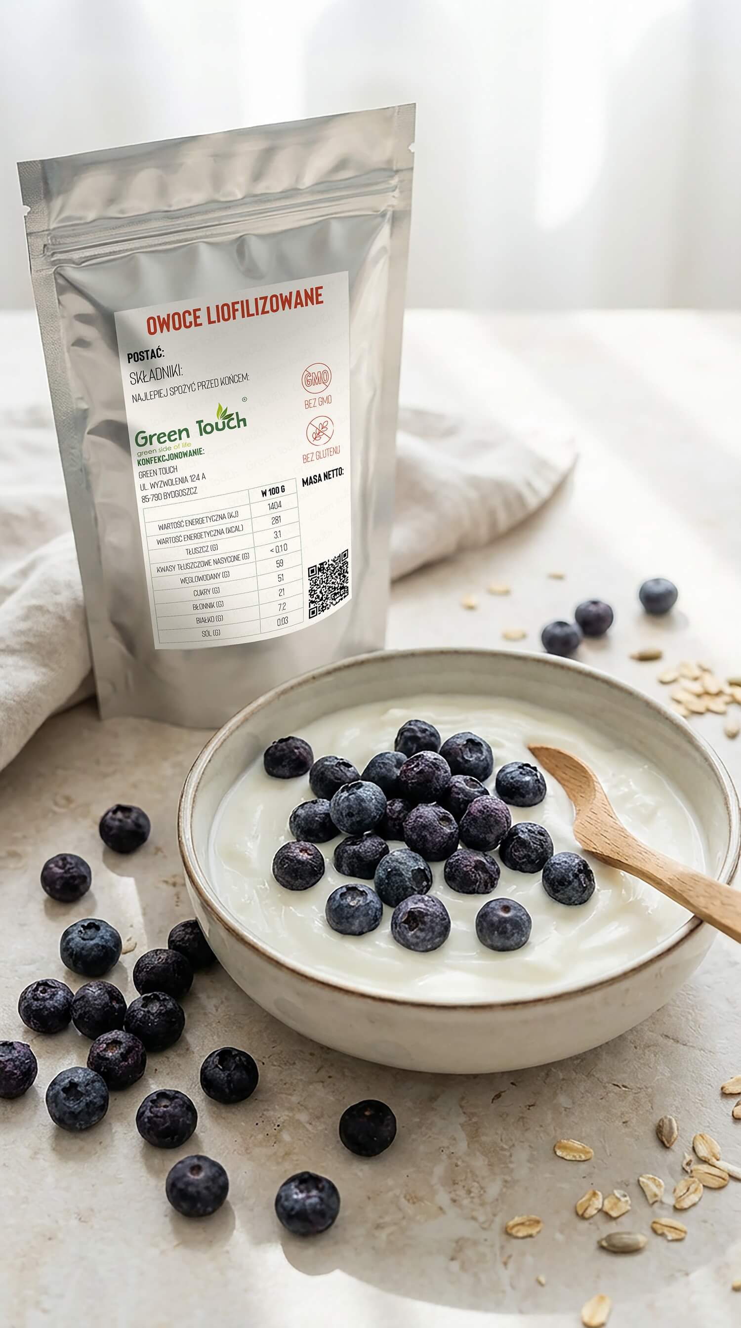 Całe liofilizowane jagody Green Touch to idealny wybór, gdy zależy Ci na naturalnym smaku i efektownym wyglądzie potraw. Zachowana forma owocu sprawia, że jagody świetnie prezentują się w daniach, a jednocześnie są wygodne w użyciu.