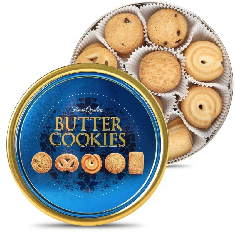Ciastka maślane w puszce 454 g to elegancki i uniwersalny zestaw na prezent, który świetnie sprawdzi się jako słodki upominek dla bliskiej osoby, do kawy, na spotkanie rodzinne lub po prostu jako stylowy poczęstunek do domu. W środku znajdziesz kruche, maślane ciastka w różnych kształtach i smakach - od klasycznych krążków, po ciasteczka z dekoracyjnymi wycięciami i delikatnymi dodatkami. Każde ciastko zostało starannie ułożone w papierowej papilotce, dzięki czemu całość prezentuje się schludnie, apetycznie i jest gotowa do podania od razu po otwarciu.