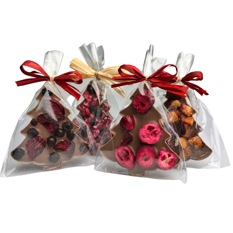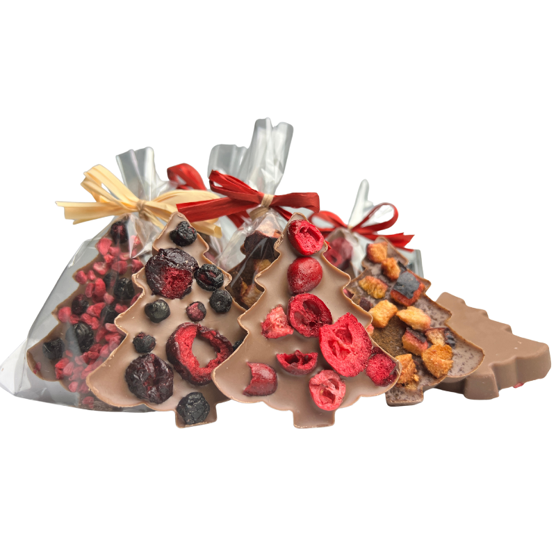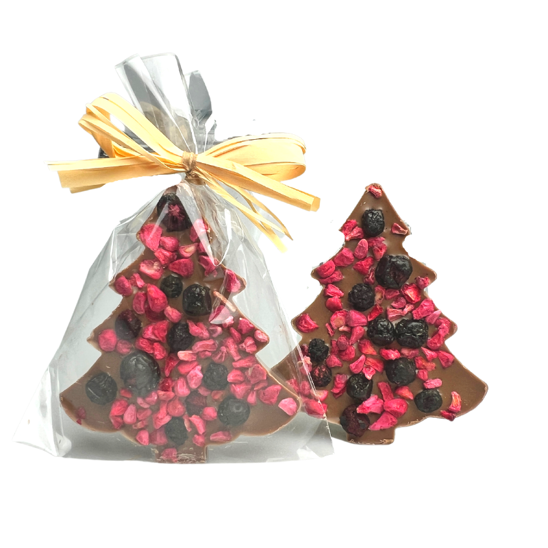 Choinka czekolada mleczna z maliną i brzoskwinią liofilizowaną