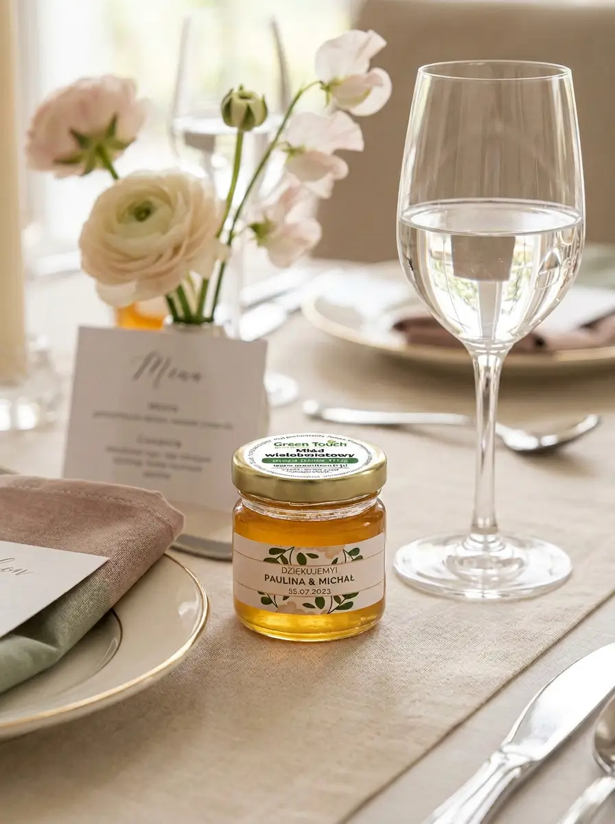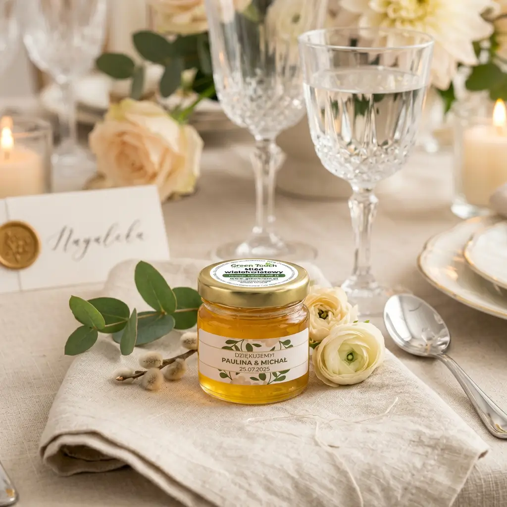 Miód wielokwiatowy to klasyczny i uniwersalny wybór na podziękowania dla gości. Taki upominek prezentuje się elegancko, a jednocześnie pozostaje praktyczny i ponadczasowy.