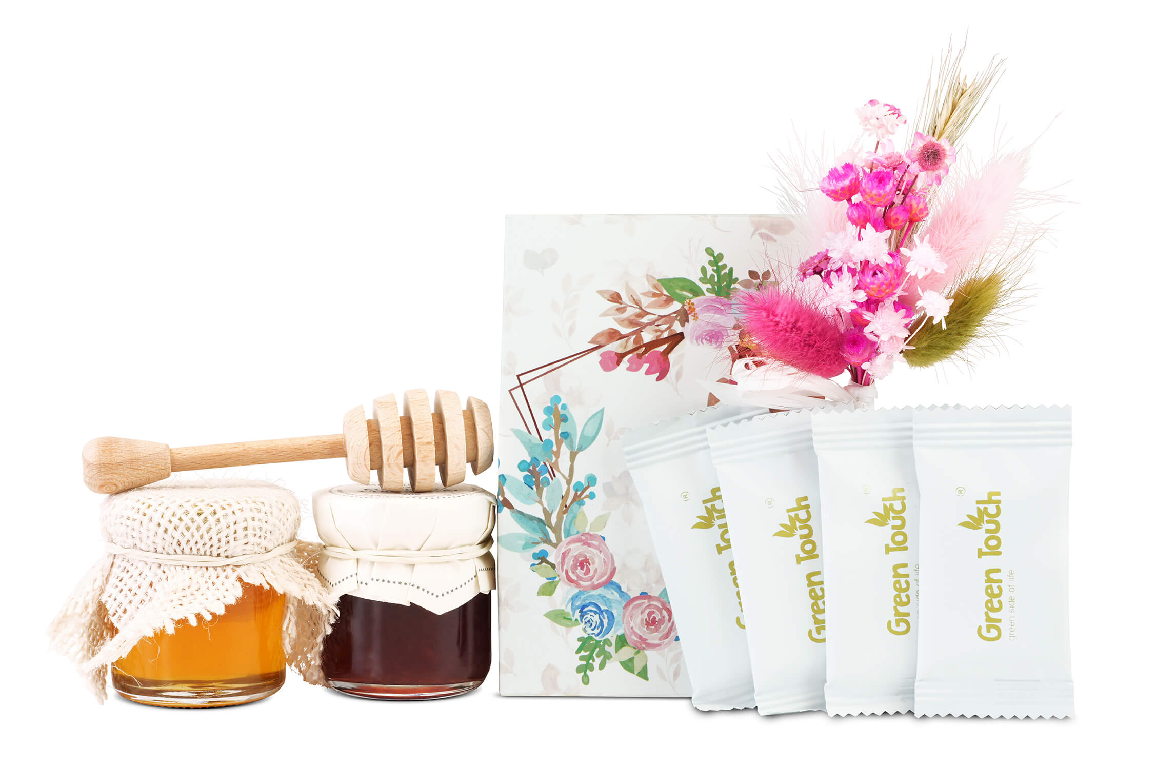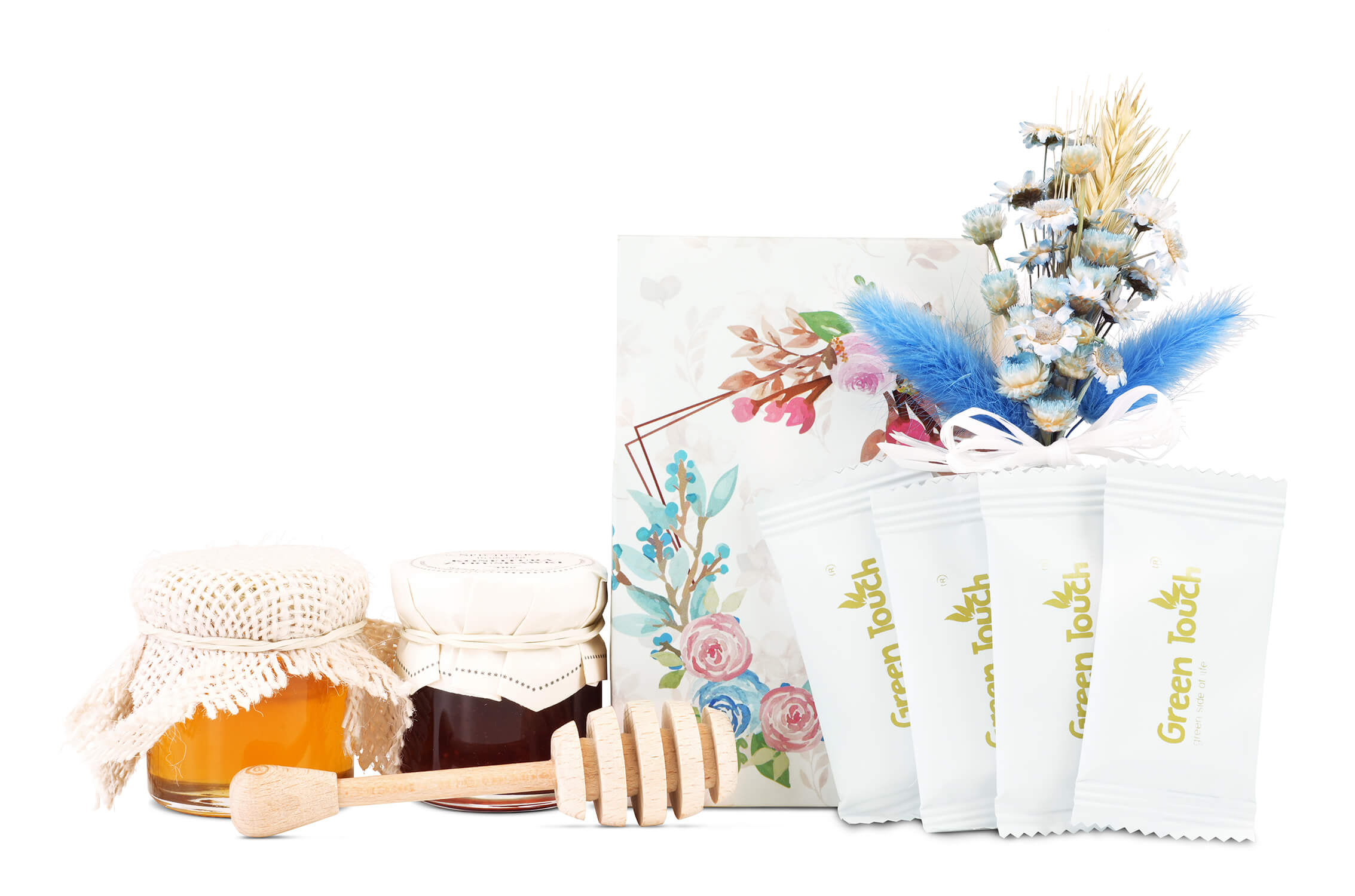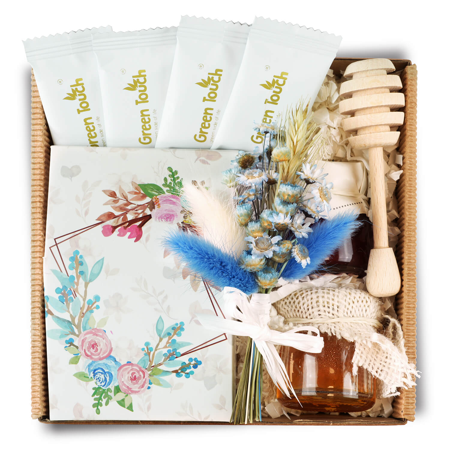 - Herbata liściasta czarna smakowa Green Touch 30 g. Herbata stanowi bazę całego zestawu i nadaje mu klasycznego, prezentowego charakteru. To element, który dobrze łączy się zarówno z miodem, jak i z konfiturą, tworząc gotową kompozycję na spokojną chwilę relaksu. Dzięki herbacie cały box zyskuje bardziej użytkowy wymiar i staje się nie tylko pamiątką, ale też przyjemnym upominkiem do wykorzystania.