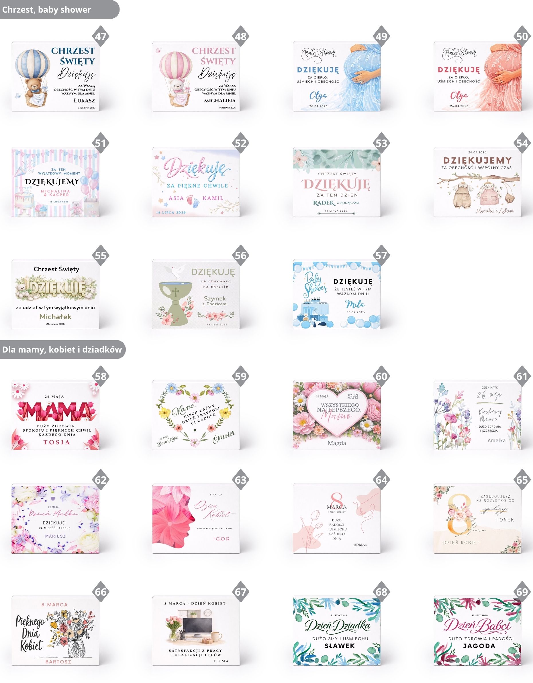 - z możliwością personalizacji tekstu i wyboru wzoru