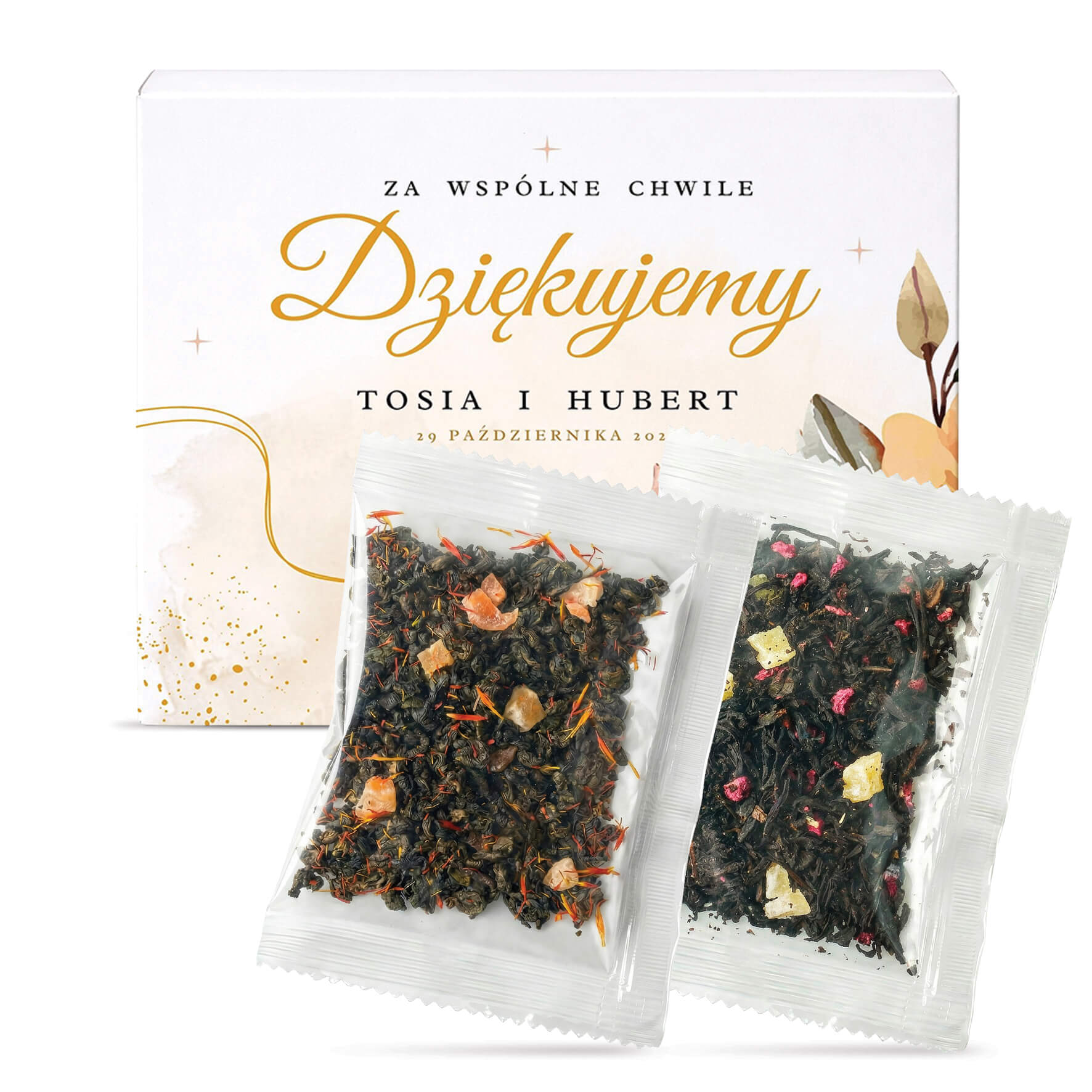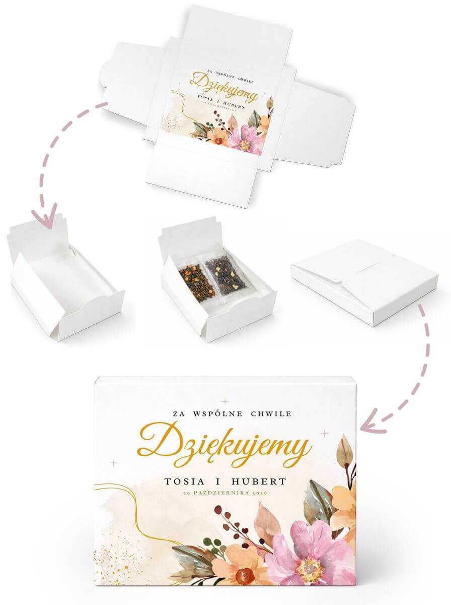 Podziękowanie dla gości upominek ślub wesele komunia chrzest zestaw herbat w pudełku z nadrukiem