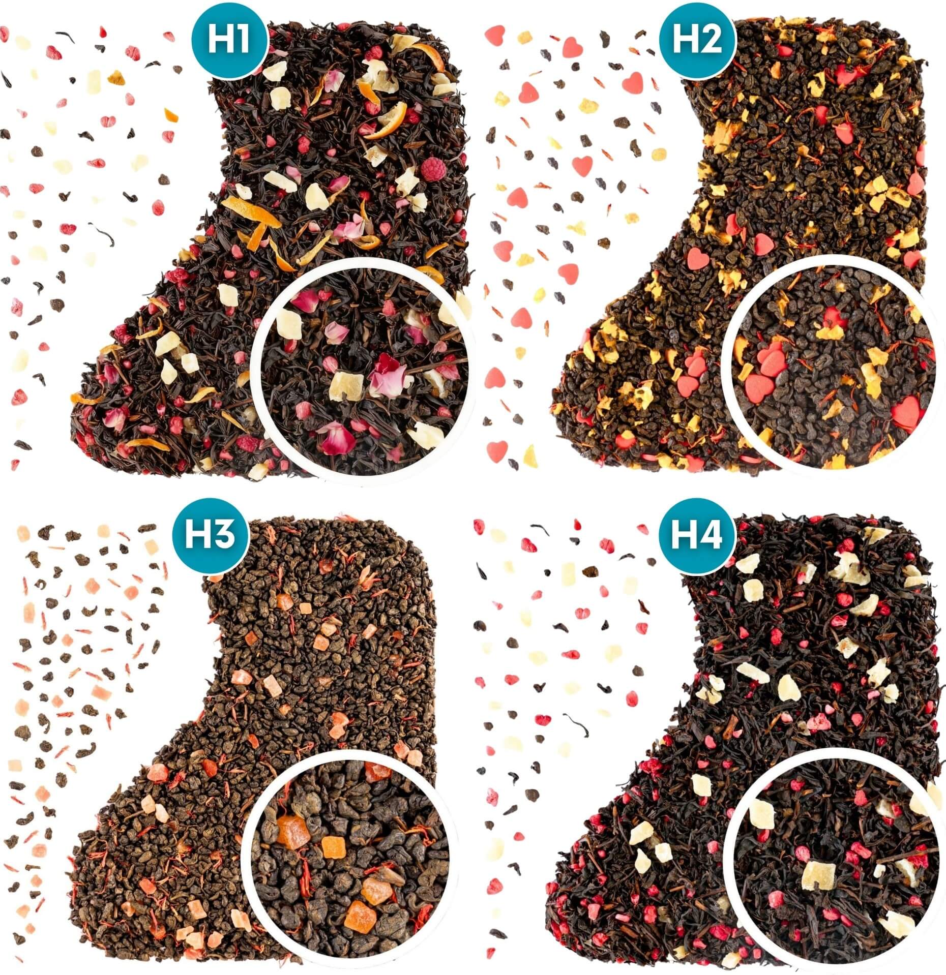 - Słodkie sekrety - herbata zielona (składniki: herbata zielona gunpowder AA, cukrowe dekorki (cukier puder 84,5%, woda, wysokooleinowy tłuszcz słonecznikowy, mąka ryżowa, skrobia ziemniaczana, barwnik E129, naturalny aromat waniliowy), morela liofilizowana, aromat, saflor. Barwnik E129 może mieć szkodliwy wpływ na aktywność i skupienie uwagi u dzieci.)